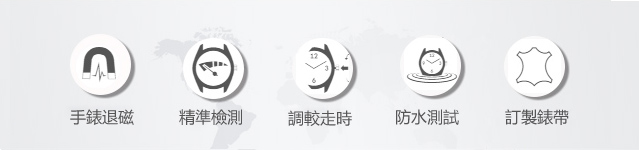 對腕錶進行技術(精度、動力儲備、防水性)與外觀檢查